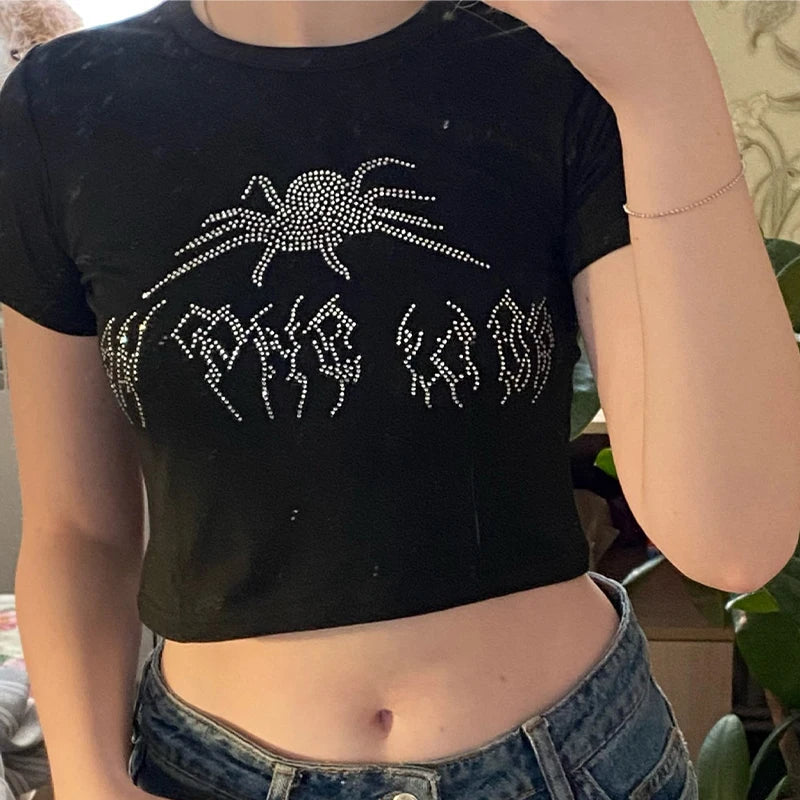 Model Number: Spider Rhinestone Summer Crop Tops